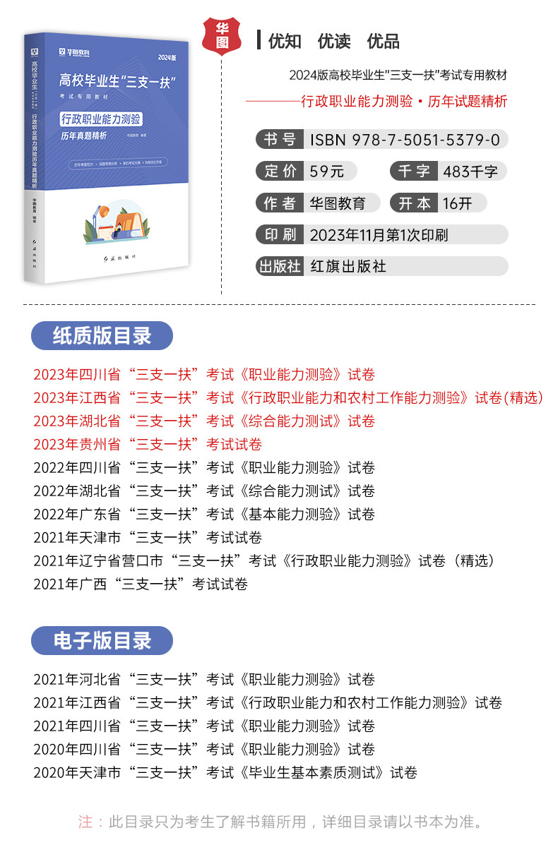 【华图图书官网】为您提供2024版高校“三支一扶”【行政职业能力测验】教材+历年 2本,更多最新全国通用三支一扶图书考试网校课程及视频请关注华图图书官网!